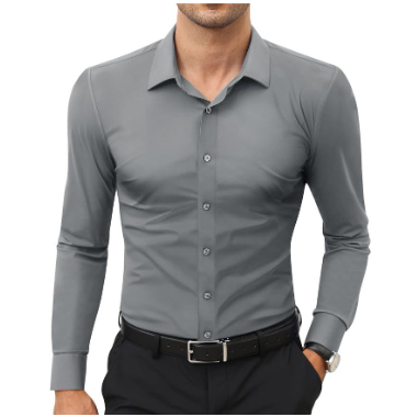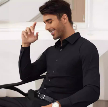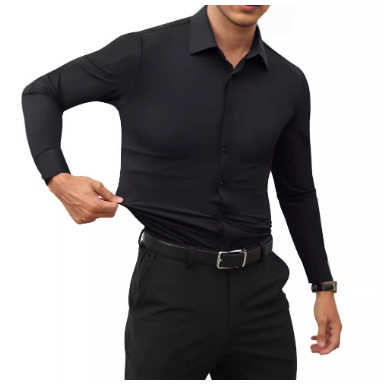 Full Elastic Force Shirt Men's Clothing Long Sleeve Shirt